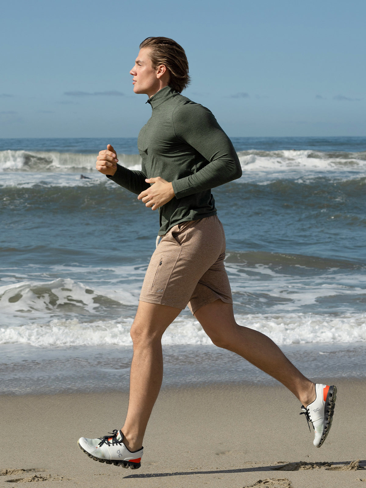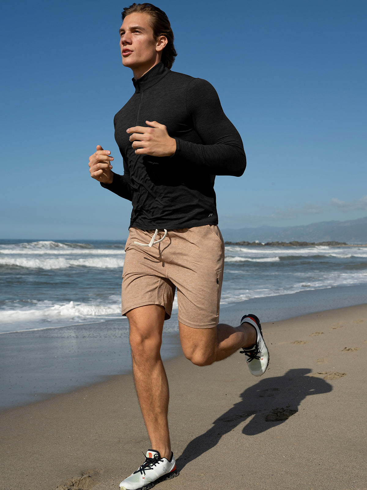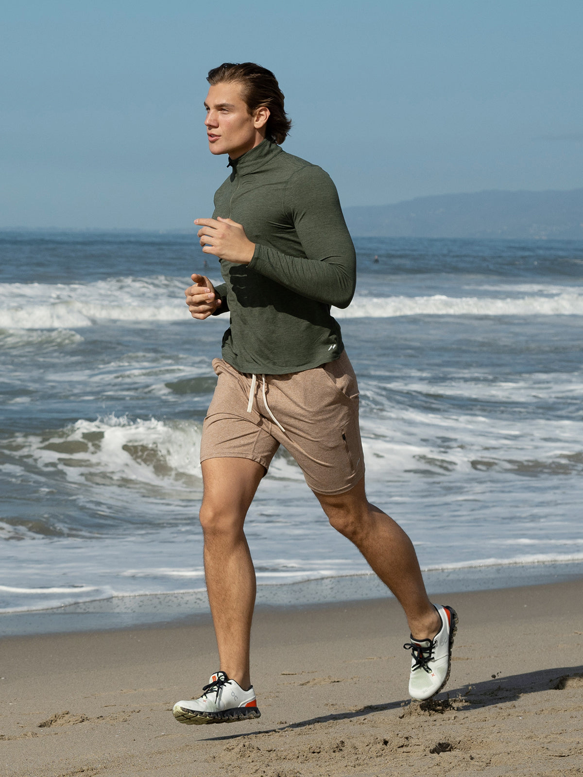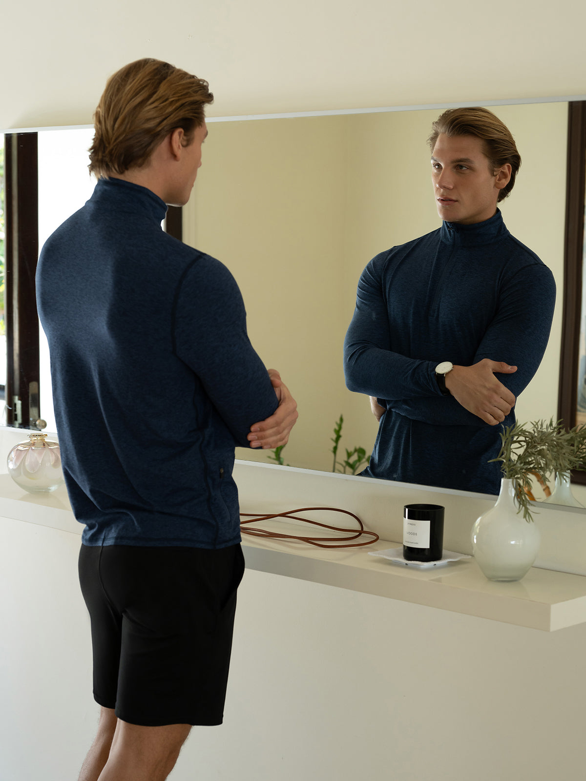 We created this men's top using four-way stretch, breathable fabric to provide maximum comfort and flexibility during activity. The mock collar and half-zip closure envelop the neck for extra warmth, while the moisture-wicking material keeps the wearer cool and dry. Functional details like the zippered side pocket and reflective logo were added for utility and style. Flat-lock seams prevent skin irritation during repetitive motions, making this the ideal top for active pursuits.