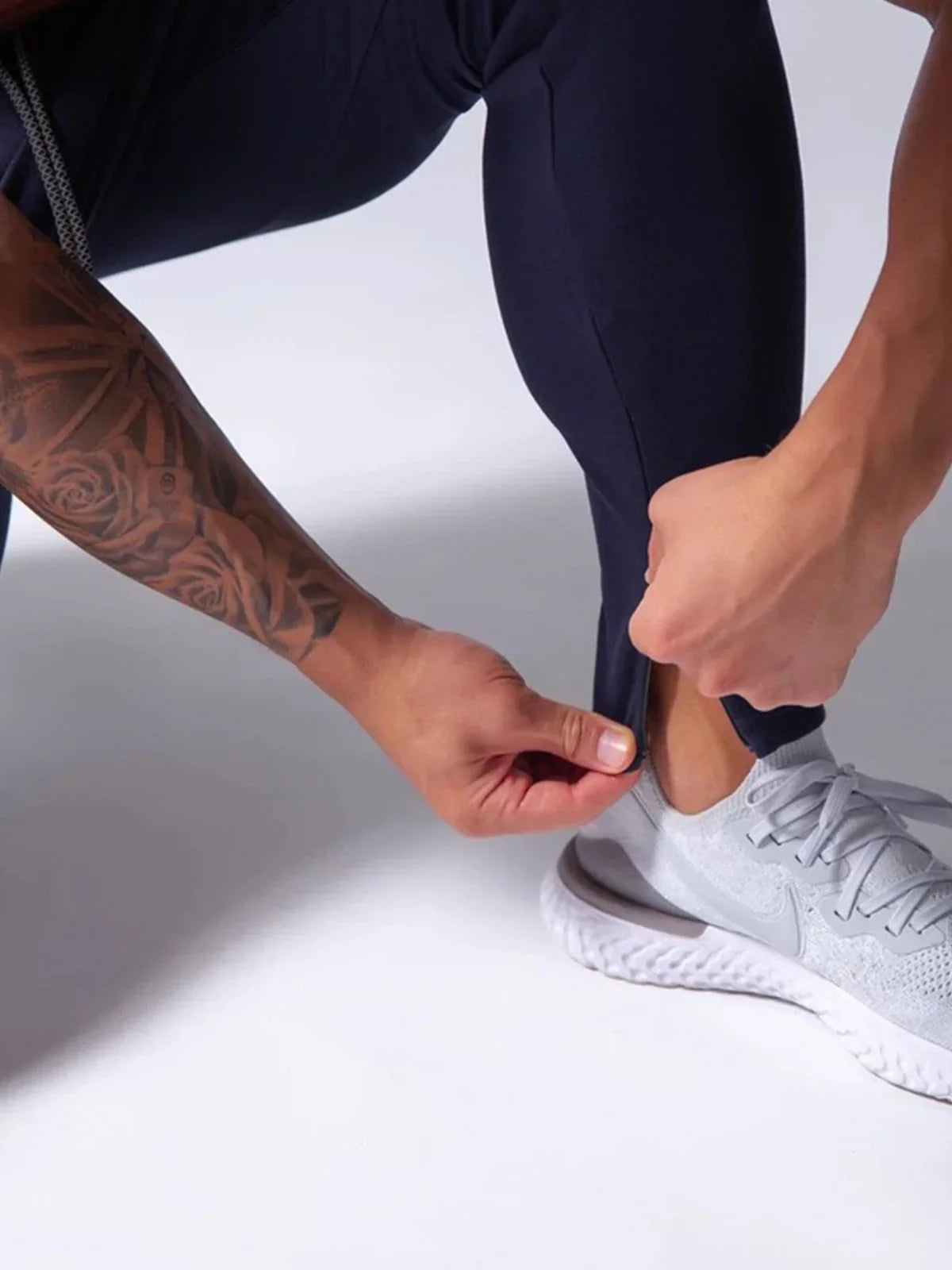 Get back to basics in these classic men's essential joggers. Cut from soft cotton fleece with a touch of stretch, they deliver cozy warmth and natural comfort. The elastic waistband and cuffed hems enable an adjustable, stay-put fit for all-day ease. Hit the streets in these laidback men's streetwear joggers. With their tapered fit and elastic cuffs, they bring casual vibes to any look. Relaxed through the hips and thighs for comfort, they work equally well for the gym or casual hangouts. Make an understated style statement in these modern men's joggers. Their slim yet comfortable fit flatters without constricting, elevated by sleek tapered legs. Front zip pockets and an elastic waistband finish the sophisticated look. Effortlessly transition from work to weekend wear.