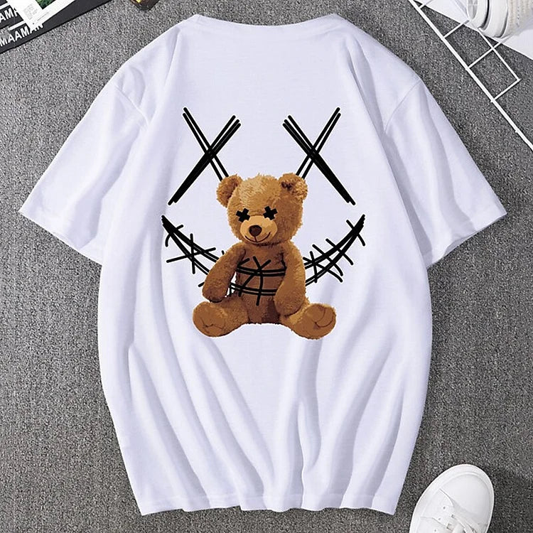 Streetwear Graphic Printed Toy Bear Crew Neck Tee