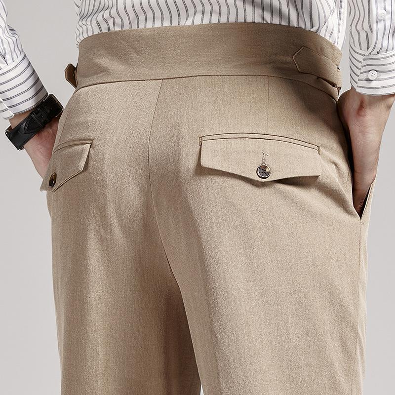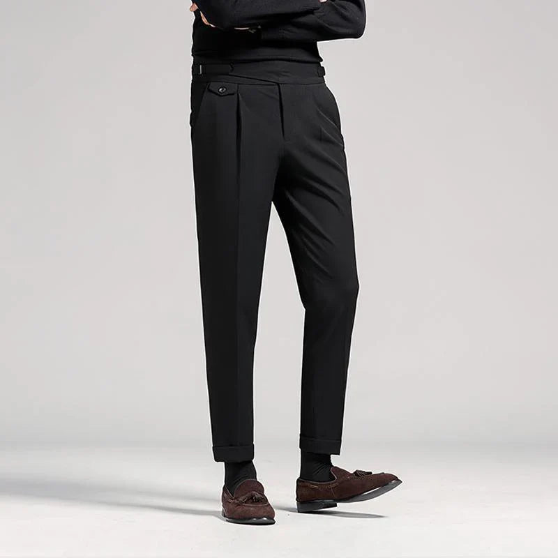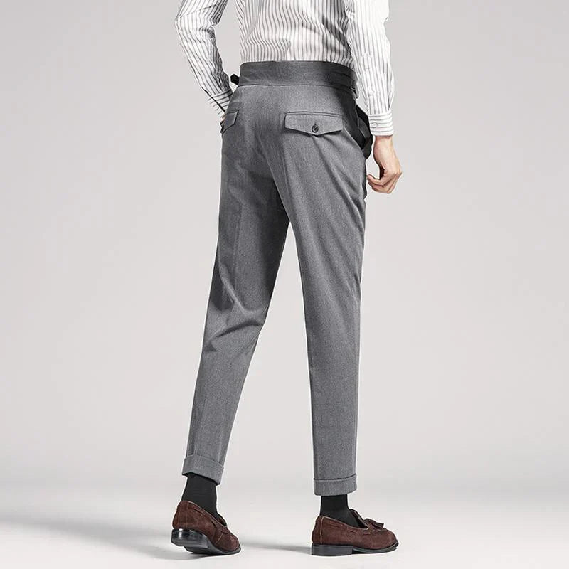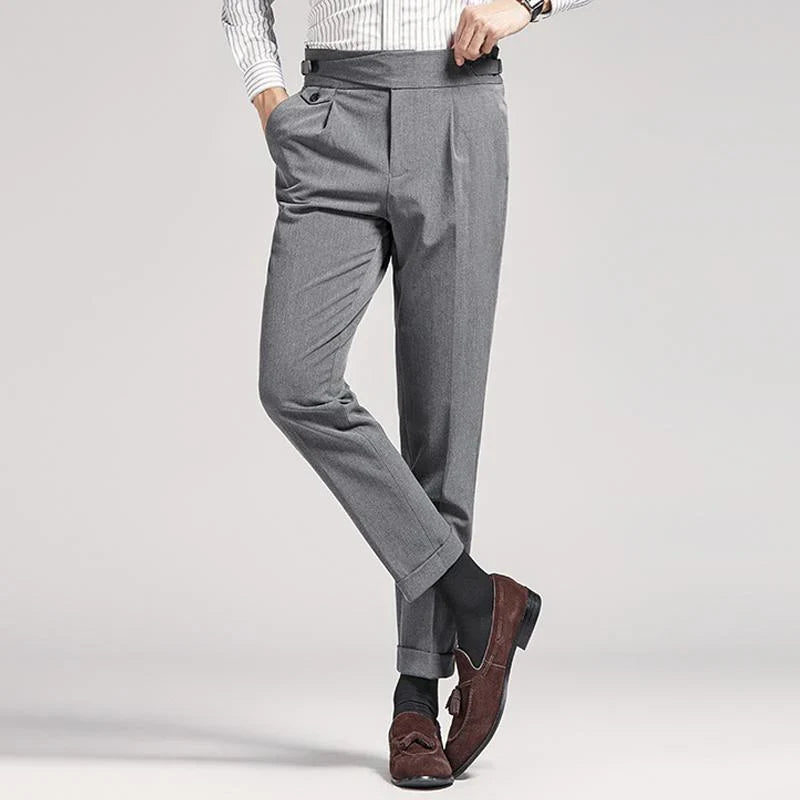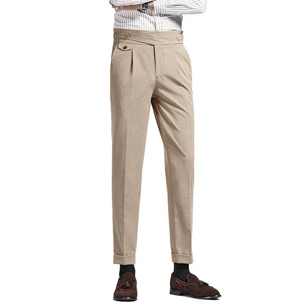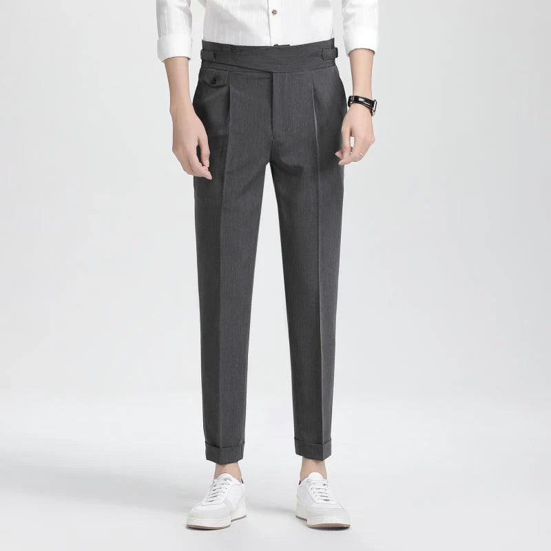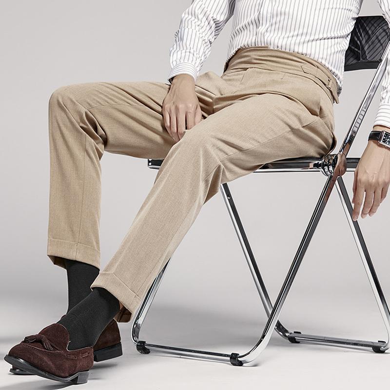 Elevate your formal wardrobe with our Men's Neapolitan High Waist Slim-Fit Cropped Business Pants – a stylish blend of sophistication and modern tailoring.
