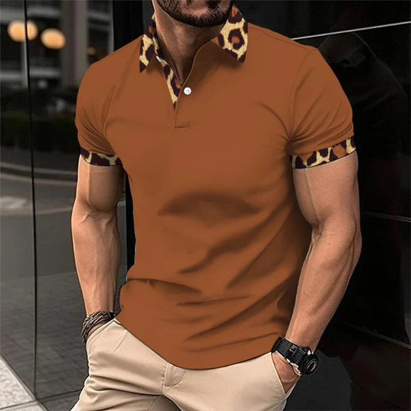 Vintage Leopard Print Patchwork Lapel Polo Shirt